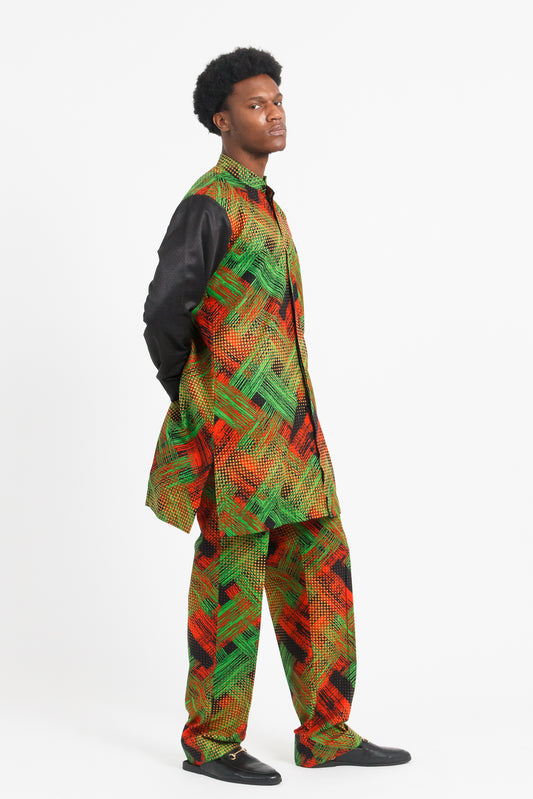 Mofe Men's Long Sleeve African Print Shirt / Jacket (Black with Colorful Geometric Panel)