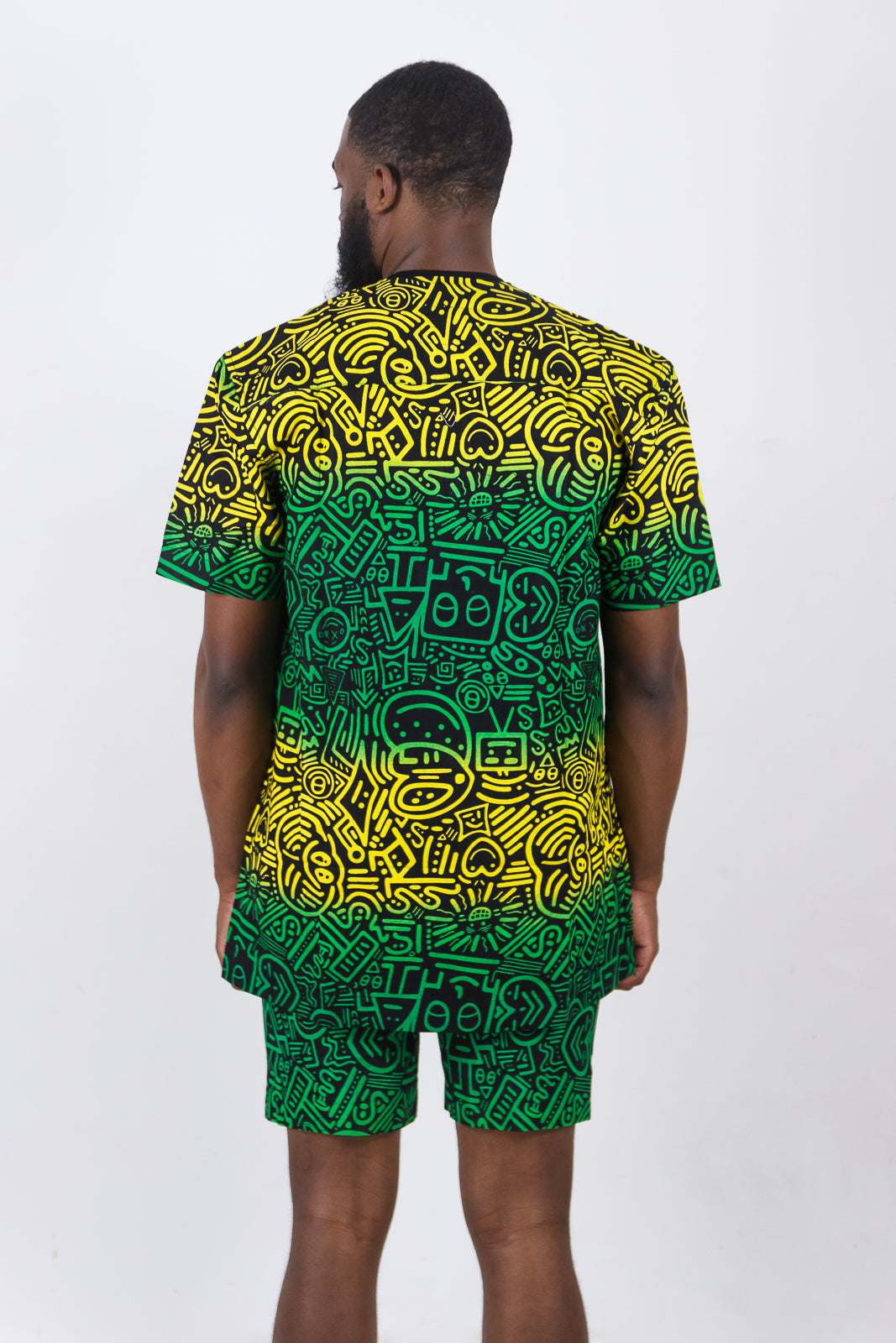 BRAZILERI Two-Piece Set, a perfect tye blend of yellow and green african print perfect for indoor and out door events.