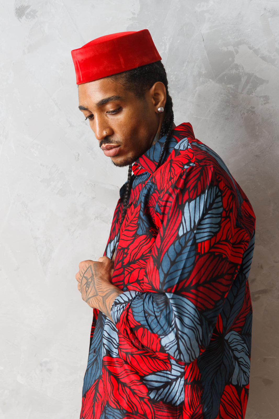 Tailored for elegance, the long-sleeve shirt features a classic collar, concealed buttons, and a thigh-length cut — ideal for dressing up with slacks or going bold with matching pants. A true homage to heritage, styled your way.