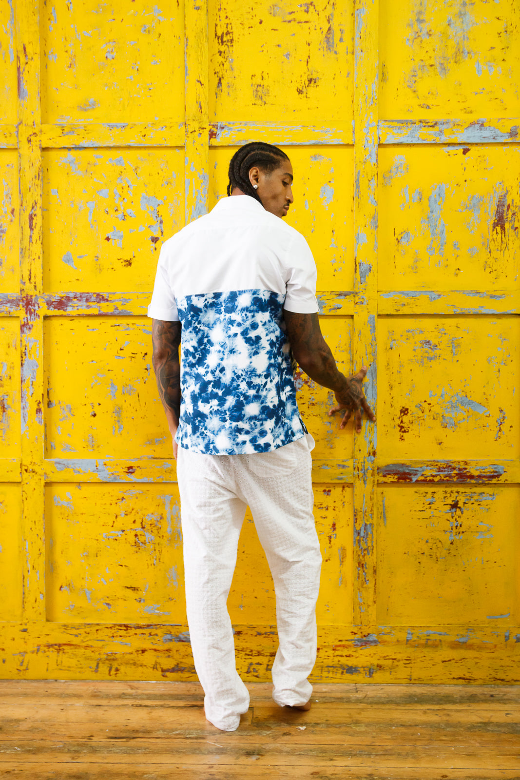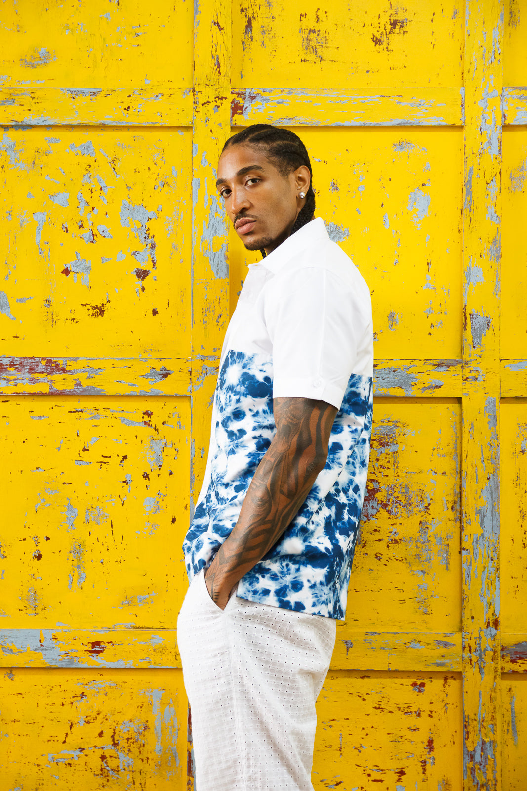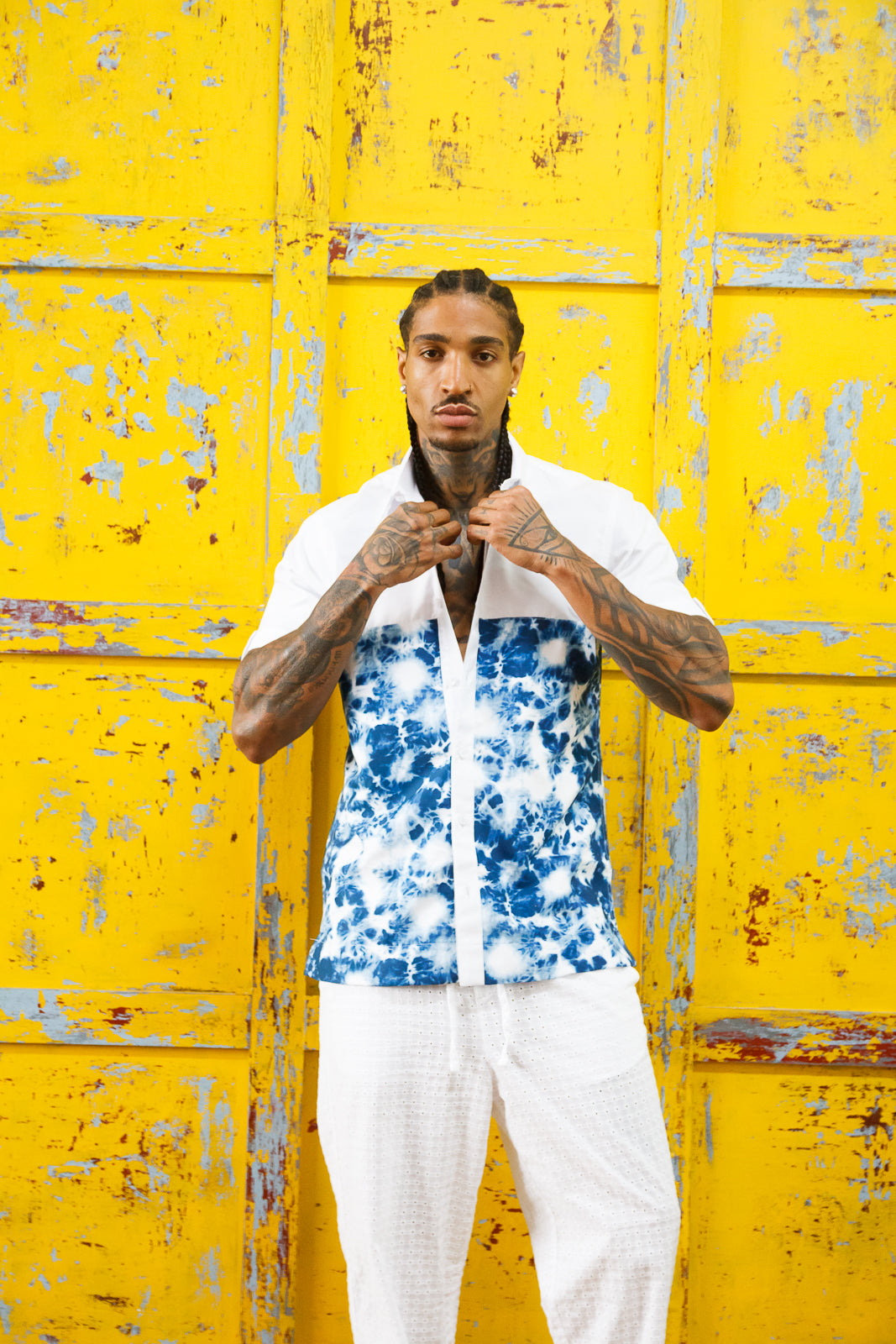 The Farino short sleeve shirt is made from smooth, lightweight synthetic silk that keeps you cool and sharp. Designed in a crisp white base with subtle dye print detail, it blends minimalism with edge — perfect for easy days and elevated moments.