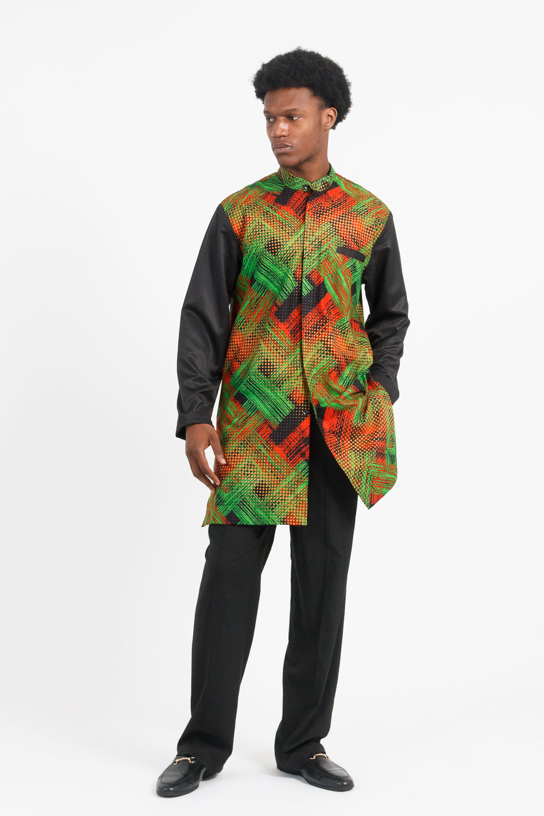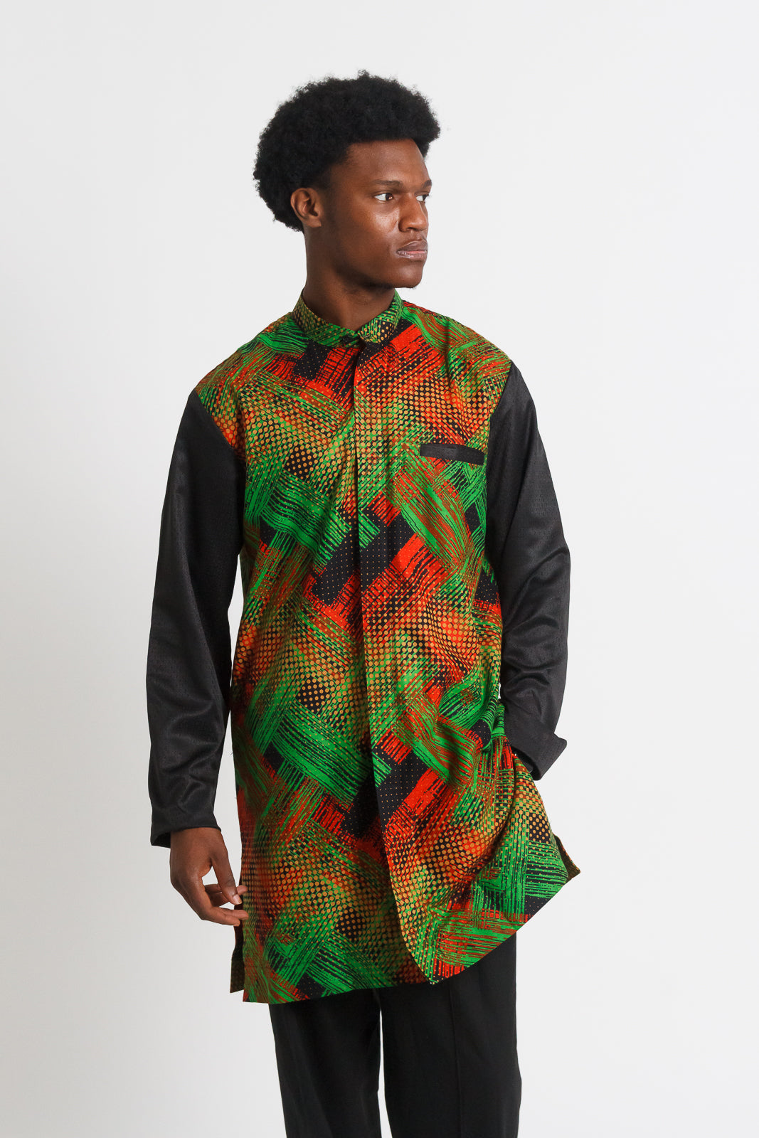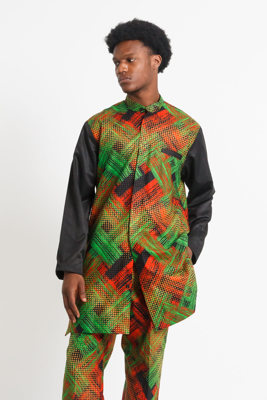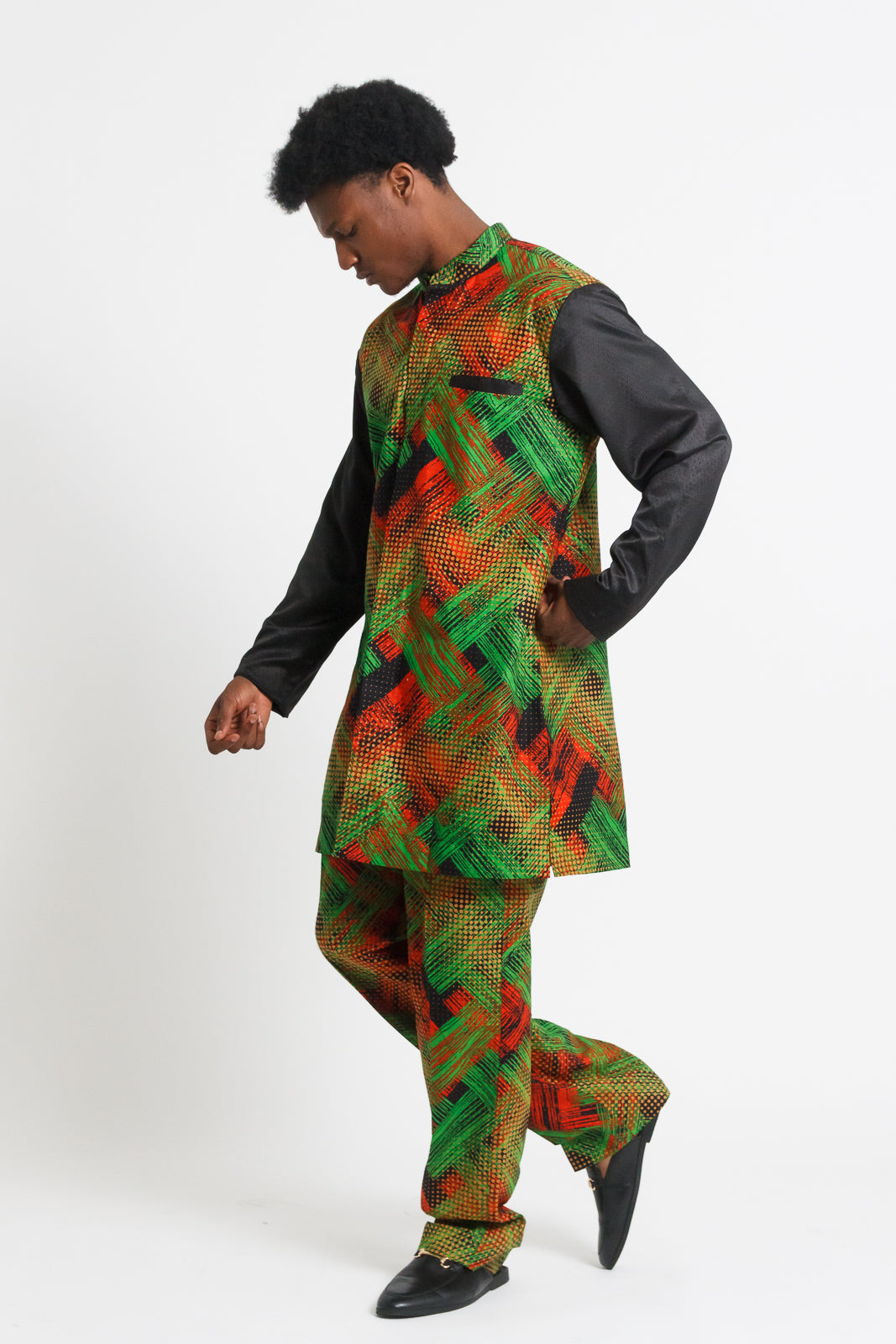 confident, rooted, and unapologetically bold. Rendered in a vivid red, green, and black African wax print, this short-sleeved overshirt is designed for presence. The relaxed, boxy silhouette and button-down front make it easy to style over a vest or wear on its own. Whether it’s a cultural event, weekend outing, or fashion-forward moment, GIRMA brings heritage and heat in one timeless piece.