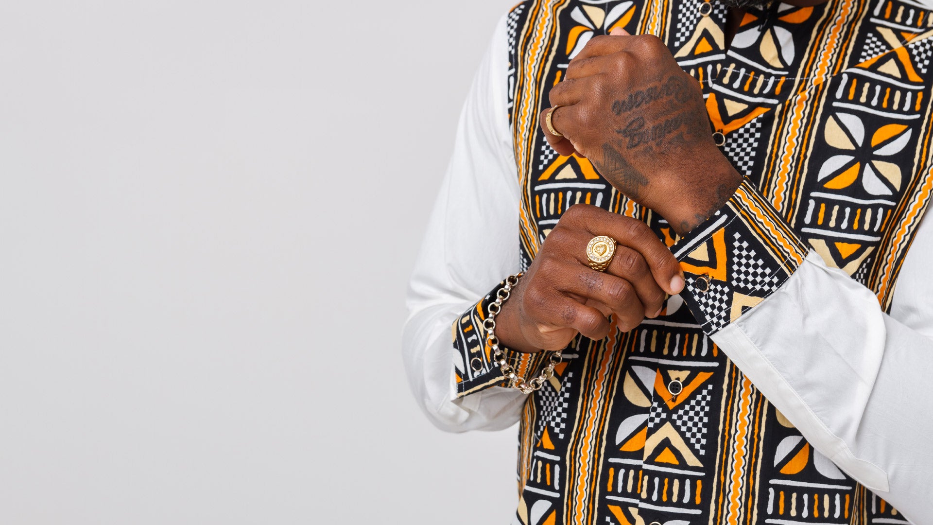 This striking piece blends vibrant geometric African print with timeless tailoring, offering a unique shirt that transcends seasons.