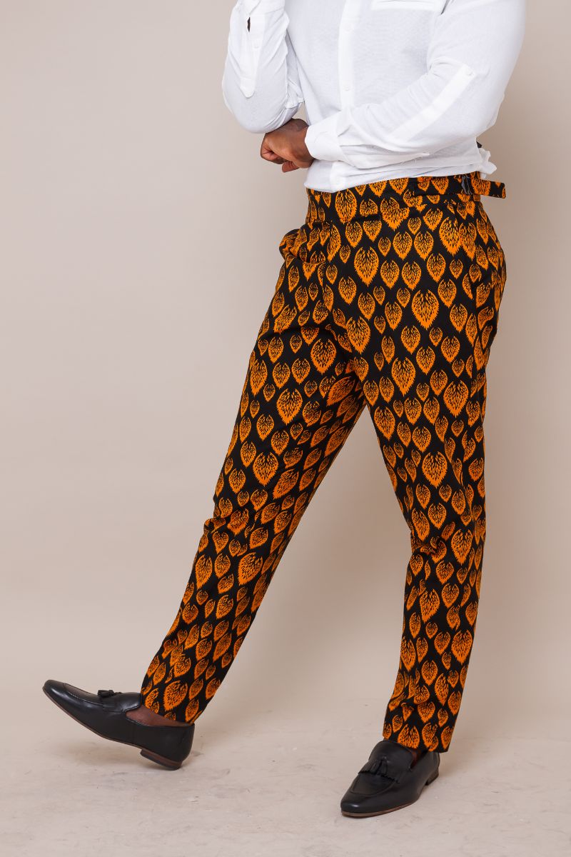 NDUKA MEN'S AFRICAN WRAP-WAIST TROUSERS WITH BUCKLE DETAIL
