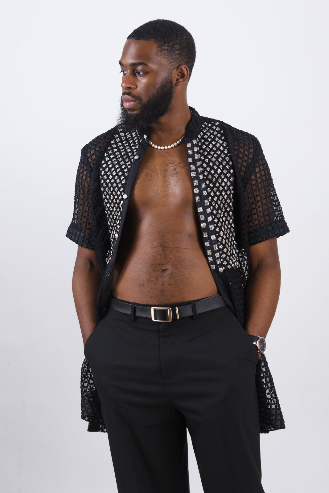 The O'SHEA Shirt is a must-have addition to your wardrobe, offering the perfect blend of effortless style and contemporary flair. Crafted from sheer silky fabric with a thread lace pattern, this shirt can be styled up for a night out or down for a laid-back, breezy day look. With its short sleeves, Mandarin collar, and button-down design, the O'SHEA Shirt effortlessly adds an air of sophistication to any outfit while keeping you comfortable all day long.