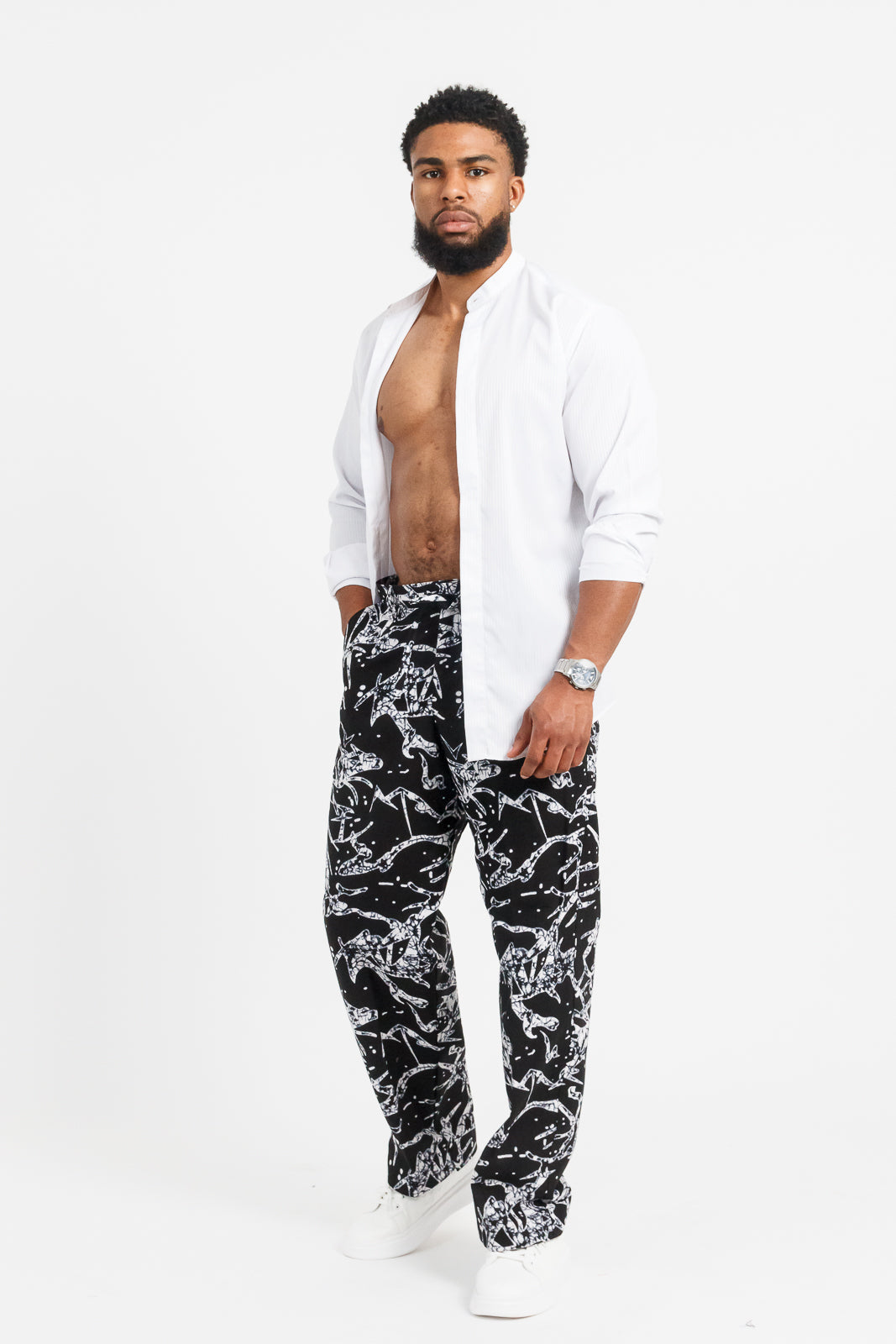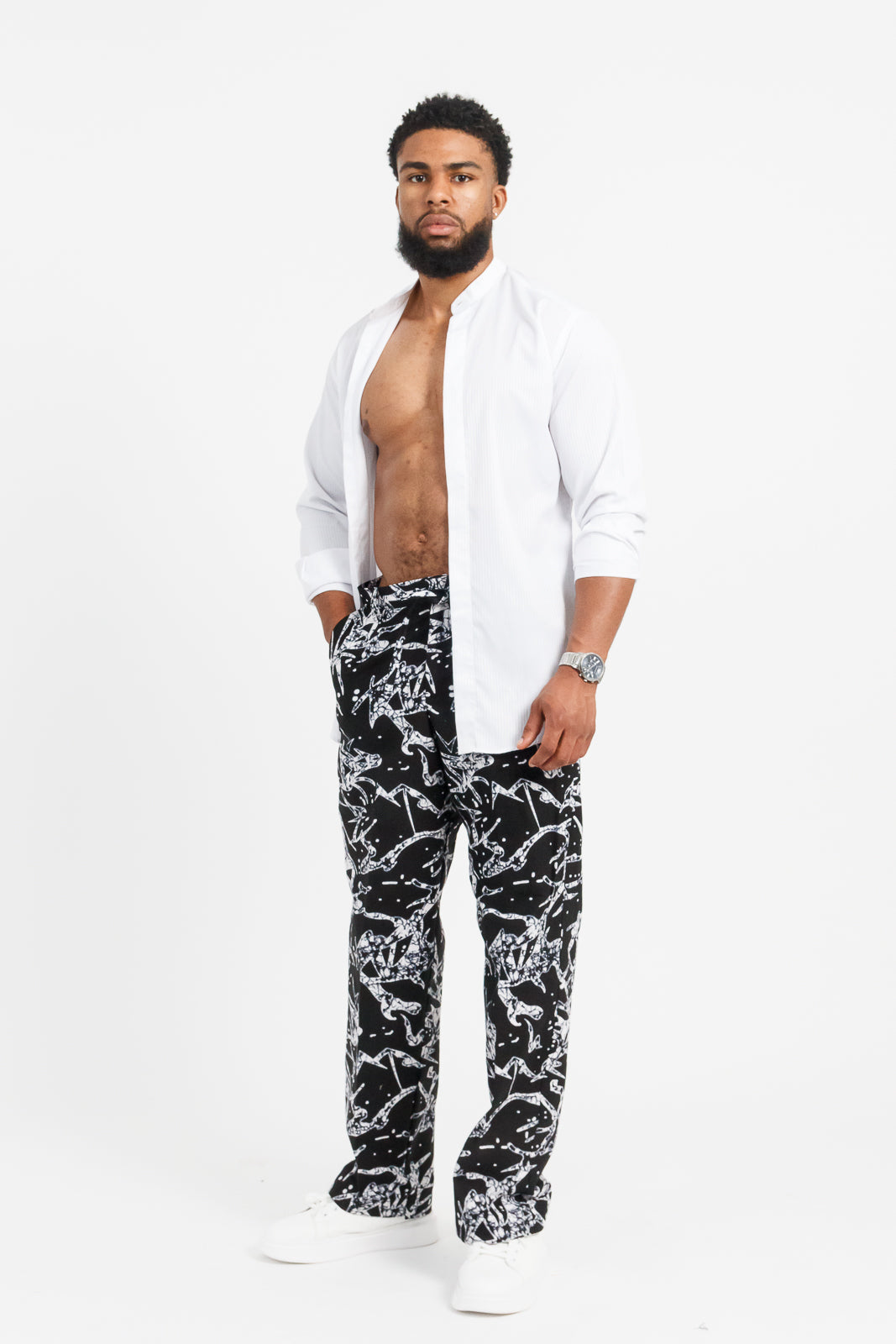 striking black-and-white abstract African print that fuses heritage with modern street edge. With their relaxed fit and lightweight fabric, these pants are made for movement — whether you're heading to an art show, weekend hangout, or city stroll.