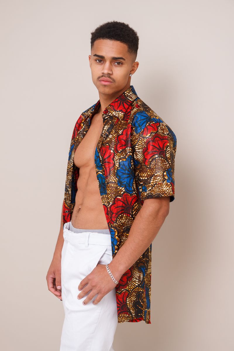 WUTA MEN'S AFRICAN PRINT FOREST FLAMES SHIRT