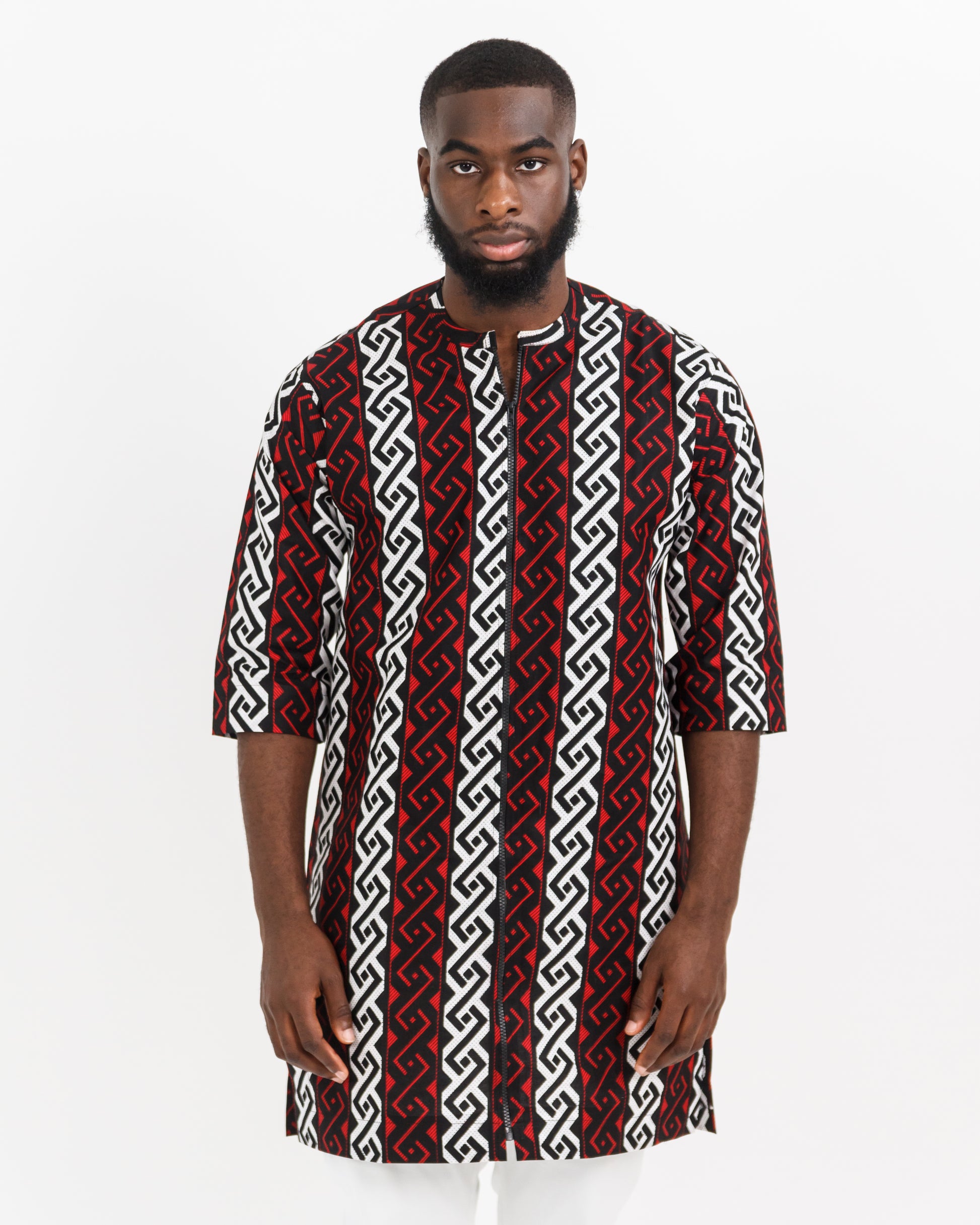 ZANKWA MEN'S AFRICAN PRINT ZIP-FRONT SHIRT